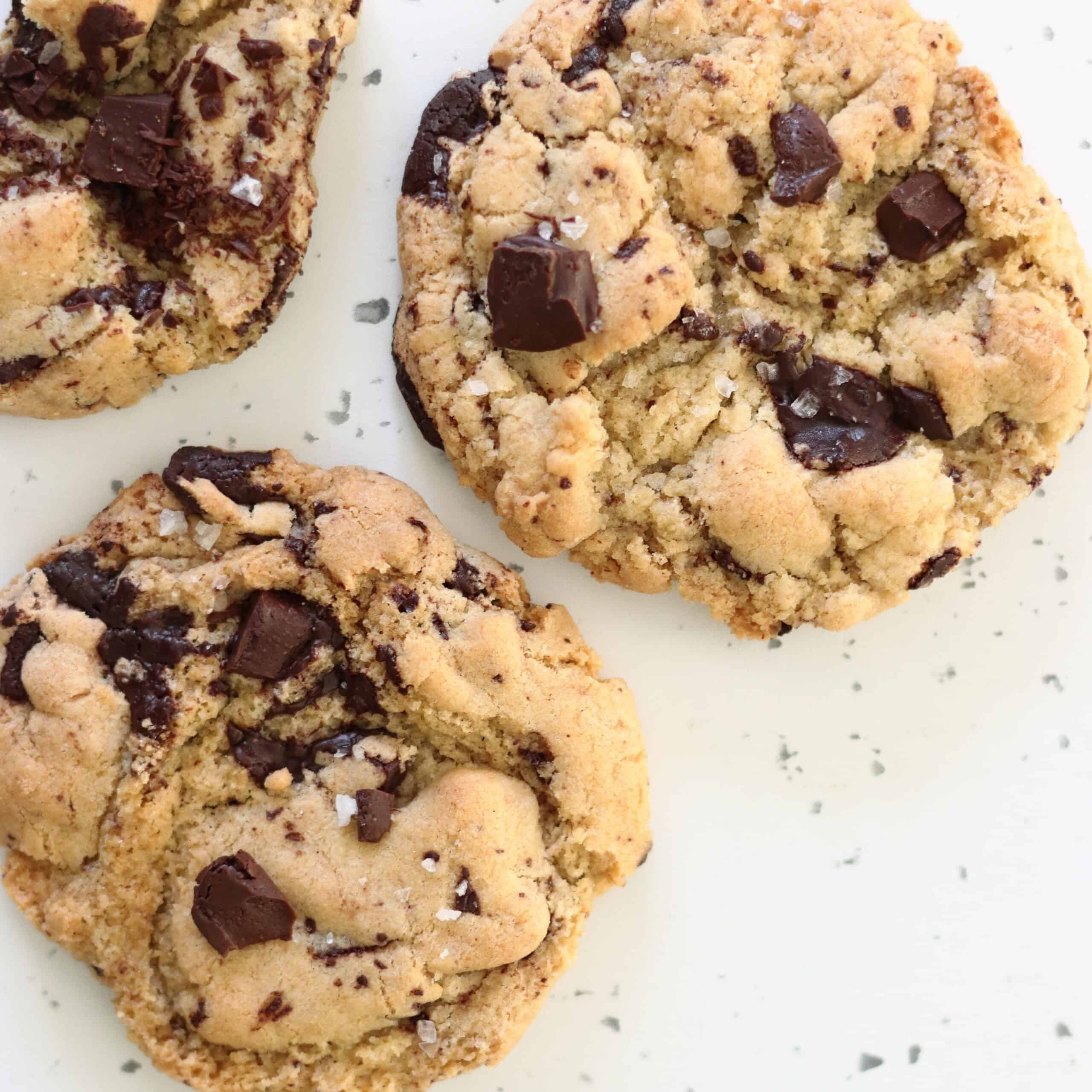 These cookies are all about contrast and balance. I’m looking for that right mix of crispness when I break it in half, but chewiness in every bite. I definitely don’t want to feel cheated on the chocolate, and I absolutely love the flavour combination of chocolate and salt. So what makes these sea salt chocolate chip cookies so special? Well, it’s a combination of all the following:
